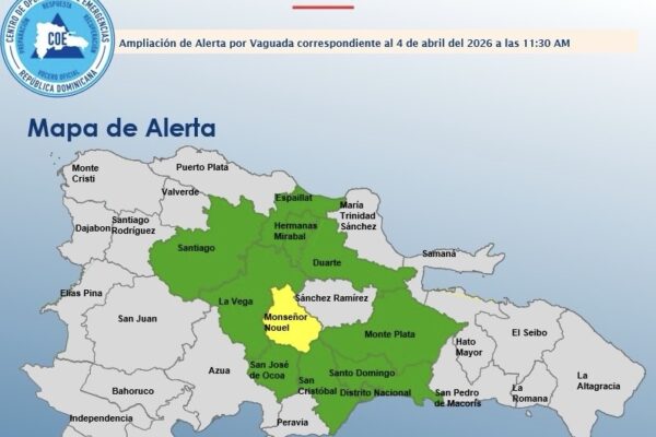 Domingo 5 de Abril 2026 Santo Domingo.– El Centro de Operaciones de Emergencias (COE) informó la modificación de los niveles de alerta en distintas provincias del país, debido a las condiciones atmosféricas generadas por una vaguada que ha provocado lluvias significativas en los últimos días. Según el boletín emitido por la Oficina Nacional de Meteorología,…