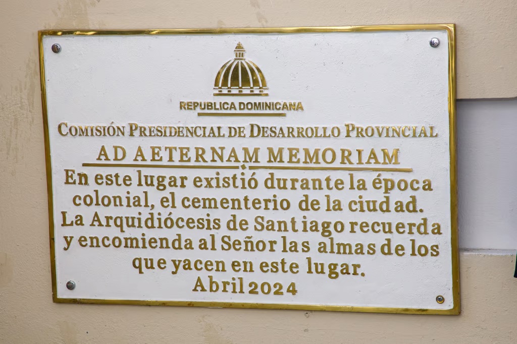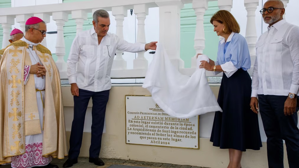 Antes de la ceremonia, el presidente Abinader y la vicepresidenta Peña develaron una tarja conmemorativa en el parqueo de la catedral, donde se hallaron restos del primer cementerio de Santiago, descubierto durante trabajos de remozamiento en abril de este año.