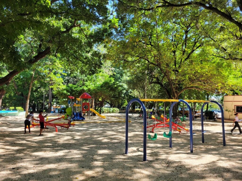 Entre los juegos en el área infantil figuran columpios de asientos, de barra de trapecio, toboganes, sube y baja (balancín), entre otros.
