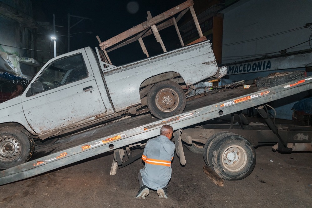 Durante la intervención de la Dirección de Defensoría y Uso de Espacios Públicos en las inmediaciones del mercado, fueron retirados nueve vehículos en condición de chatarras.