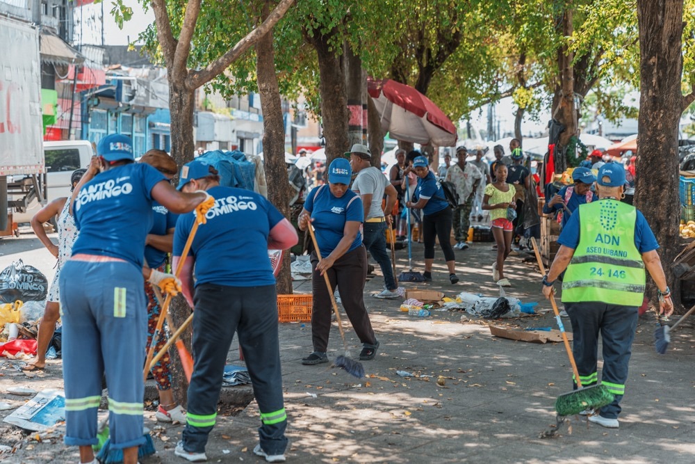 Pamela Martínez, directora de Servicios Públicos, detalló que la intervención abarcó las avenidas Juan Pablo Duarte, Los Mártires y la Respaldo María Montés, donde 30 brigadistas sanearon el espacio exterior del mercado.