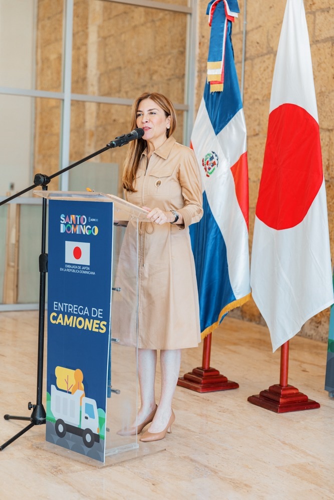 Carolina Mejía agradeció la bondad del pueblo de japonés, a través de su Gobierno, expresada con la entrega de los camiones que serán de gran utilidad para la ciudad.
