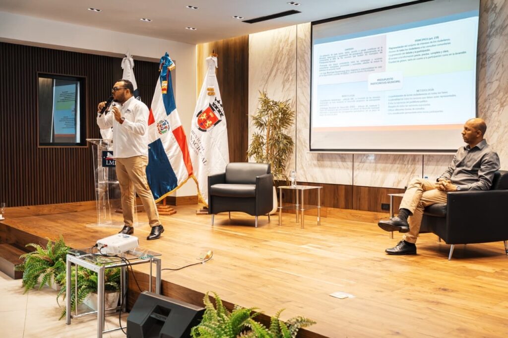 La Dirección de Desarrollo Comunitario del cabildo capitaleño, en colaboración de la LDM, organizó el conversatorio titulado “Las Juntas de Vecinos: Pilar de la Participación Ciudadana y Aliadas Estratégicas del Gobierno Local”, en la que el director de Monitoreo y Gestión Municipal de la LMD, Manuel Marte, conversó sobre la participación ciudadana en la gestión municipal. Mientras que Beycker Custodio, encargado de Planes, Programas y Proyectos, habló acerca de la gobernanza local y presupuesto participativo.