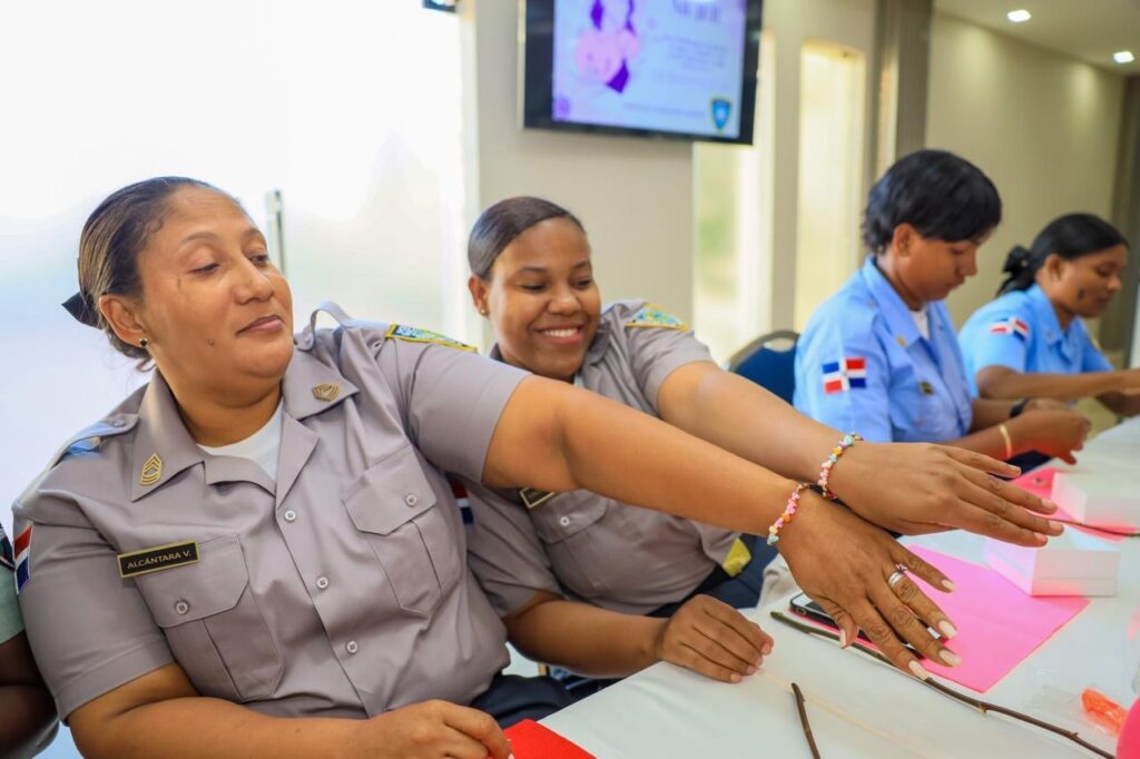 Unas 40 agentes policiales, adscritas a distintas direcciones y áreas de la institución, participaron activamente en esta jornada, que también incluyó un taller de bisutería impartido por la coronel Ana Josefina Jiménez Cruceta, titular de la Dirección de Policía de Protección Judicial.