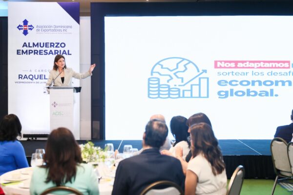 Jueves 12 de Junio,2025 La vicepresidenta llamó a transformar ideas en acción y destacó que las exportaciones ya superan los 4,600 millones de dólares en 2025. Santiago,R.D.-La vicepresidenta de la República, Raquel Peña, encabezó este miércoles en la ciudad corazón, Santiago, el almuerzo empresarial organizado por la Asociación Dominicana de Exportadores (Adoexpo) y la Asociación…