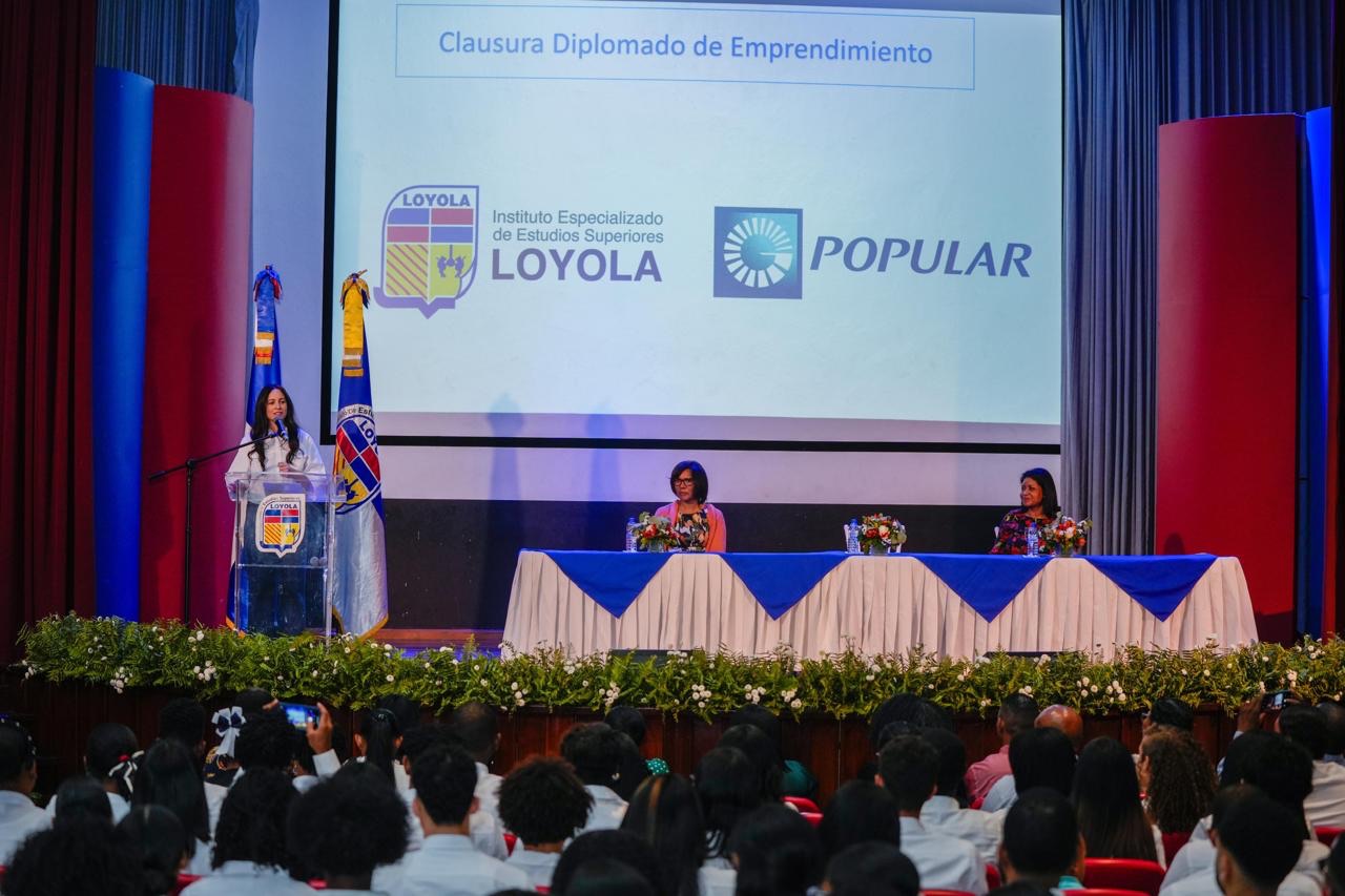 Santo Domingo,D.N.-El Banco Popular Dominicano, como parte de su apoyo al emprendimiento en los jóvenes, celebró la clausura de la edición 27ma. del Diplomado en Emprendimiento junto al Instituto Politécnico Loyola (IPL) y el Instituto Especializado de Estudios Superiores Loyola (IEESL), en San Cristóbal, en la que participaron más de un centenar de estudiantes.