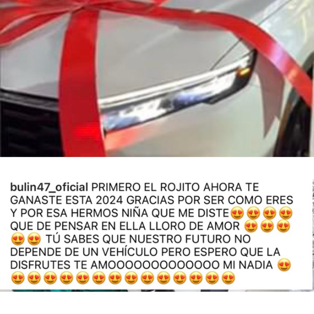 “Tú sabes que nuestro futuro no depende de un vehículo, pero espero que la disfrutes. Te amo, mi Nadia”, expresó