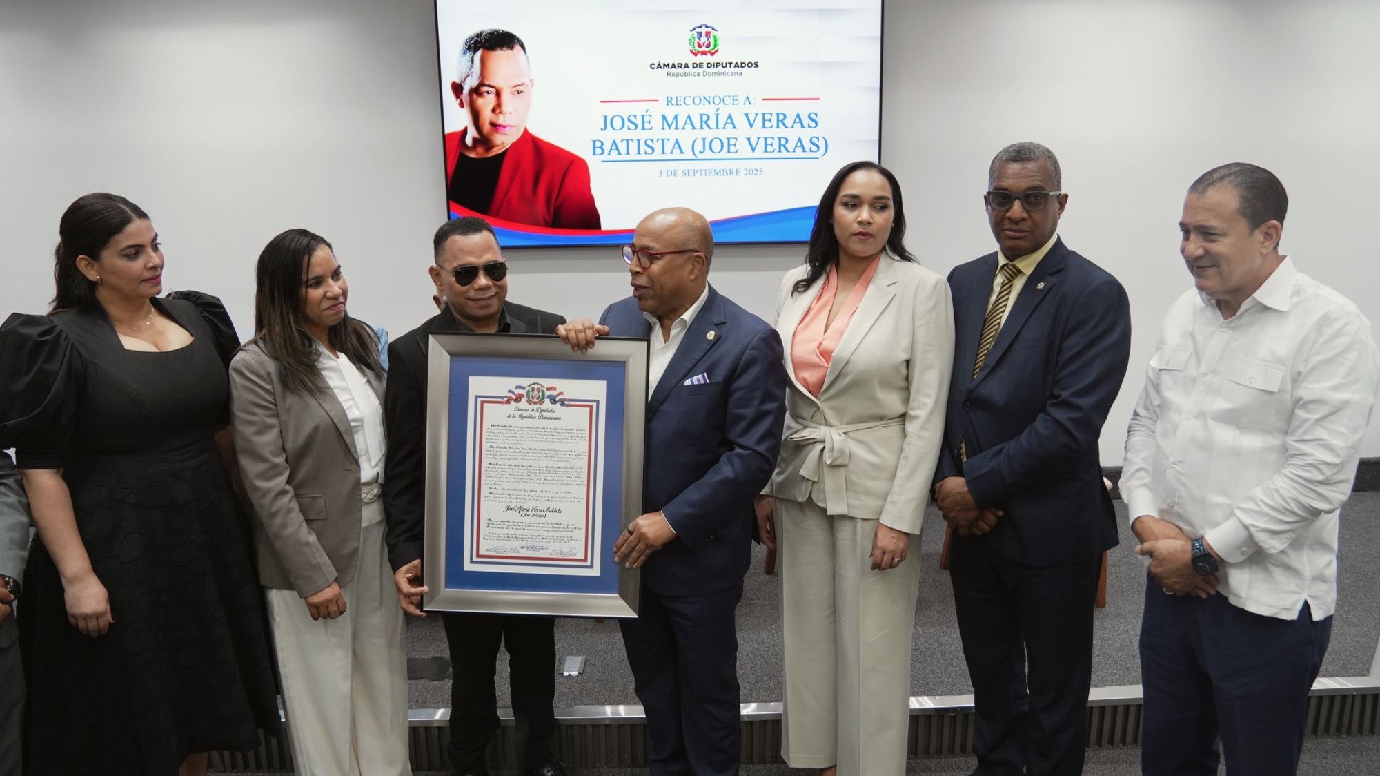 De su lado, Joe Veras emocionado, agradeció el reconocimiento a la Cámara de Diputados y dijo que significa mucho, no solo como artista, sino como dominicano orgulloso de sus raíces y lo dedicó a sus familias, seguidores y a su natal municipio de Cevicos y la provincia Sánchez Ramírez y al sector la Agustinita, de la Capital, a donde se trasladó al salir de lugar de nacimiento.