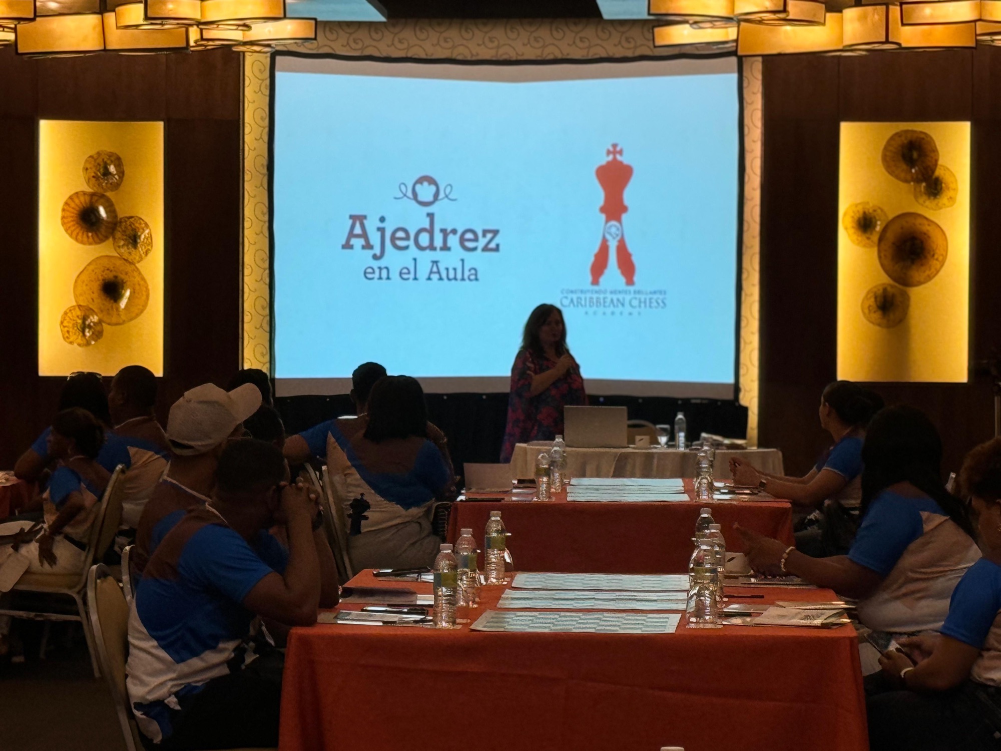 Punta Cana – Caribbean Chess Academy ha finalizado con gran éxito su taller de capacitación, parte del Programa Internacional Ajedrez en el Aula. Este evento, que tuvo lugar el martes 6 de agosto de 9:30 a.m. a 4:30 p.m. en el prestigioso Hotel Barceló Palace Deluxe en Bávaro – Punta Cana, contó con la destacada participación de la Maestra Internacional Adriana Salazar.