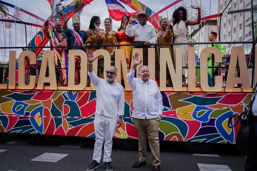 El evento contó con una impresionante carroza inspirada en la Plaza de la Bandera Dominicana y presentó personajes icónicos como los Guloyas, los Diablos Cojuelos de la Vega, y otros trajes folklóricos. Las espectaculares alas azules que evocaban las playas dominicanas y las recreaciones de la flor Bayahíbe y la flor de la Cayena aportaron un toque sensorial a la experiencia.