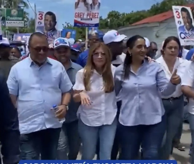 Santo Domingo.- Carolina Mejíaencabezó una marcha caravana en Padre las Casas de Azua, en apoyo a los candidatos del PRM, senadora Lía Díaz, candidatos a diputados Navarro Campos, Grey Pérez, Cesar Beltré y Brenda Ogando.