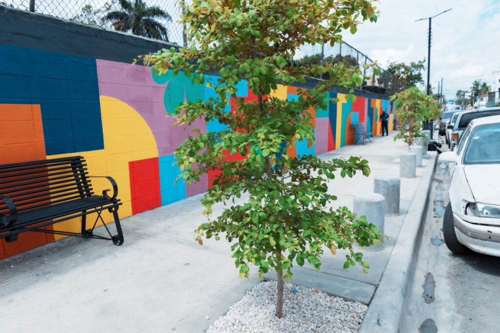 Además, la alcaldía colocó bolardos para evitar que vehículos sean estacionados en las aceras, e instaló de luminarias que mejoran la seguridad en el sector de la circunscripción dos del Distrito Nacional. Adicionalmente, se plantaron 87 árboles de especies nativas y endémicas que forman parte del listado permitido en el Plan de Arbolado Urbano del Distrito Nacional, y se integraron 125 plantas ornamentales.