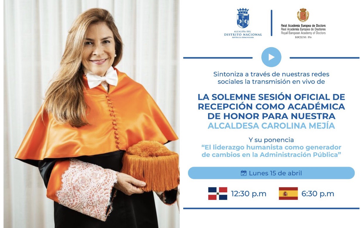 La alcaldesa del Distrito Nacional Carolina Mejía ingresó este lunes como Académica de Honor de la Real Academia Europea de Doctores, con el discurso “El liderazgo humanista como generador de cambios en la Administración Pública”.