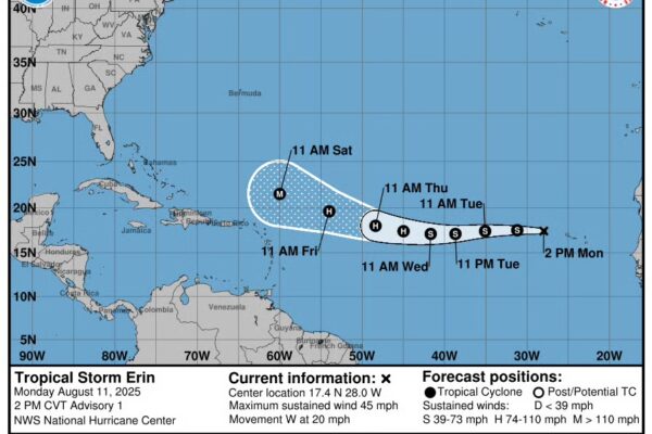 Tormenta Tropical Erin podría alcanzar categoría de huracán