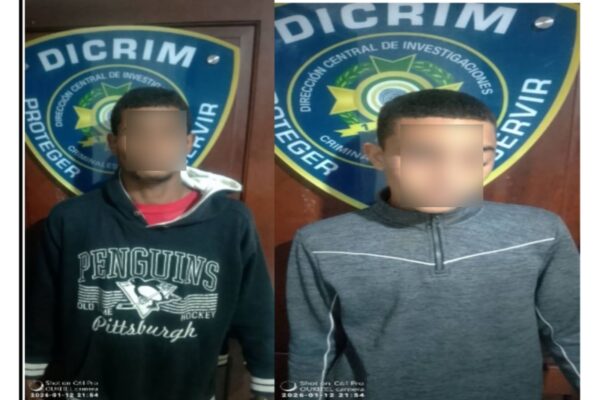 Martes 13 de Enero 2026 Bonao.-La Policía Nacional, a través de la Dirección Central de Investigación (DICRIM), informó el arresto de dos hombres sorprendidos mientras presuntamente se dedicaban a extorsionar comerciantes en la comunidad de Arroyo Toro, en Bonao, provincia Monseñor Nouel. Los detenidos fueron identificados como Franklin Ignacio Ramos Candelario, de 49 años, y…
