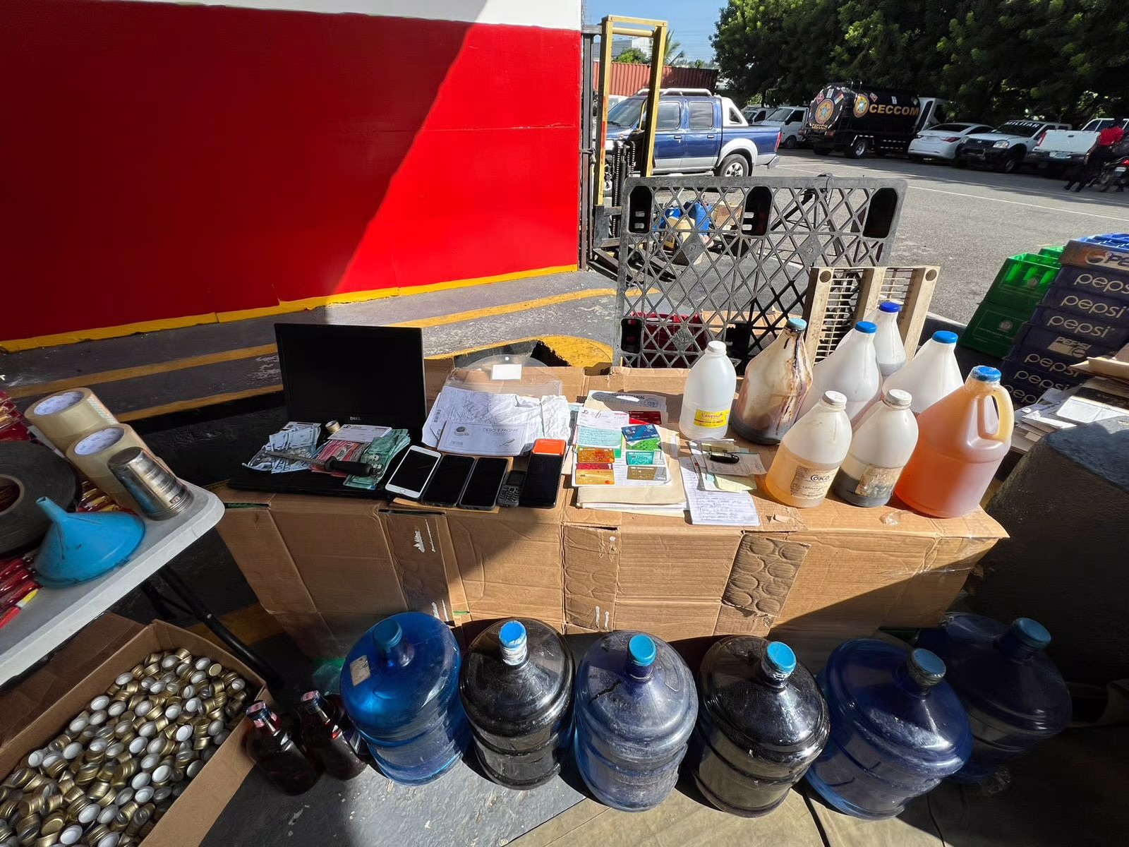 La intervención se llevó a cabo tras un trabajo de inteligencia que permitió desmantelar un centro de acopio que abastecía el mercado de la Pulga en la ciudad. Durante el allanamiento, las autoridades incautaron 74 garrafones de clerén, equivalentes a aproximadamente 3,600 litros, además de 1,818 botellas de alcohol de distintas marcas y tamaños, 24,800 unidades de cigarrillos y 1,328 unidades de ampollas y pastillas.