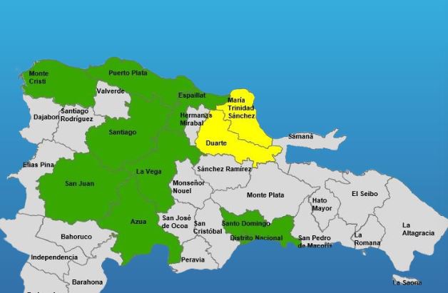 Las provincias en alerta amarilla son: María Trinidad Sánchez y Duarte.