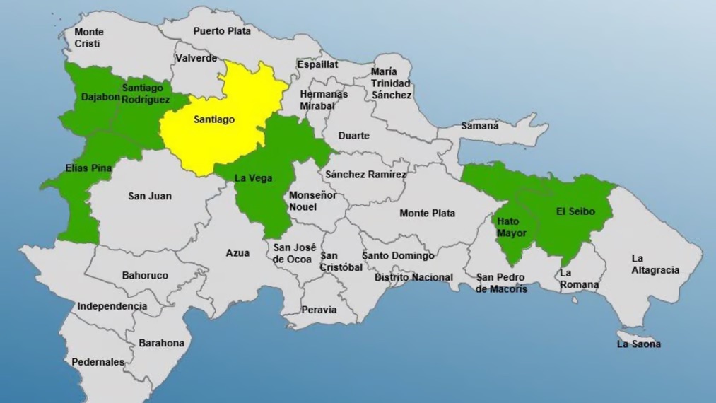 En alerta verde están: Santiago Rodríguez, La Vega, Dajabón, El Seibo, Elías Piña y Hato Mayor.