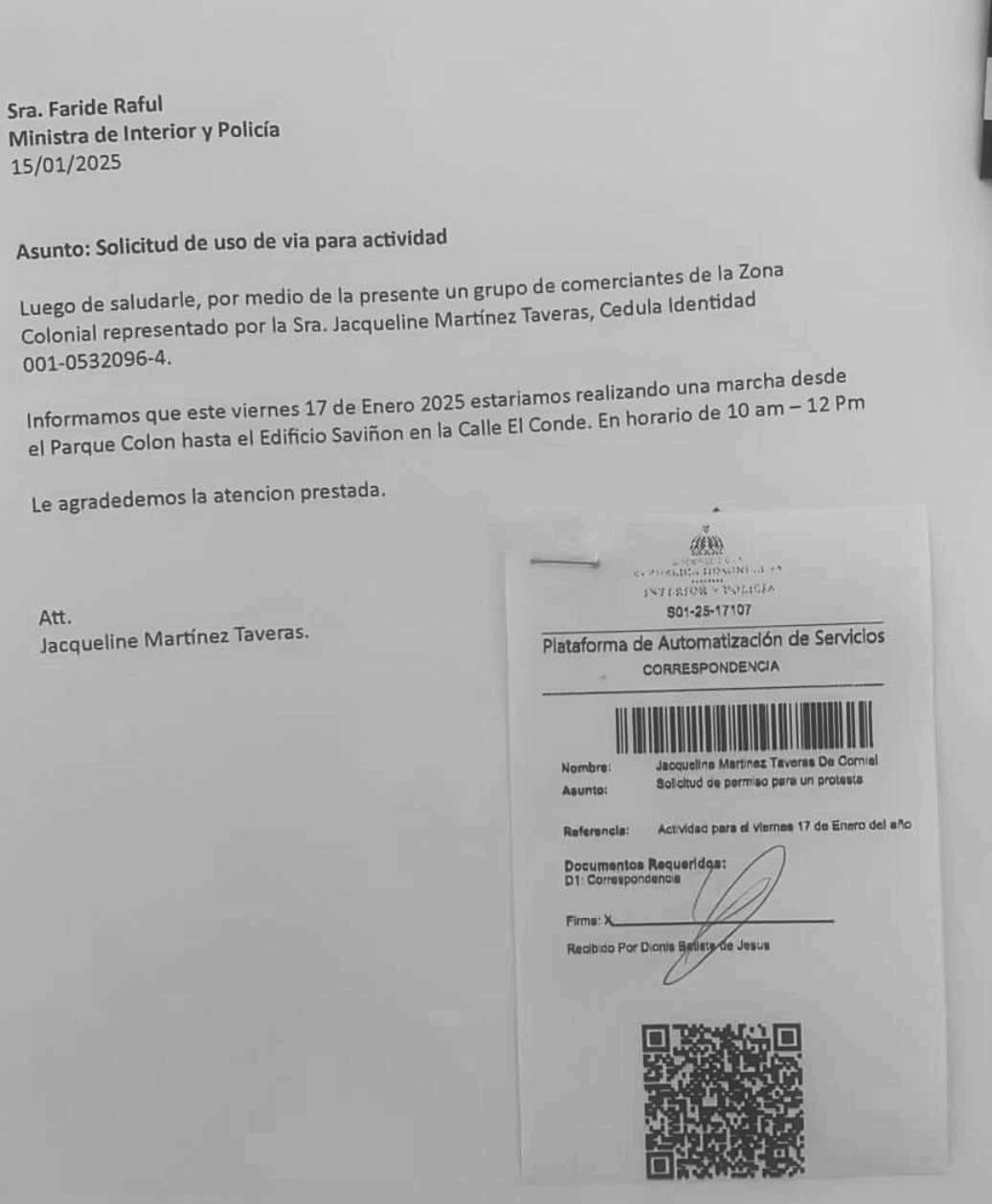 La protesta se llevará a cabo en el corazón de la Zona Colonial, afectando el tránsito y buscando llamar la atención de las autoridades para que reconsideren las condiciones de los trabajos, donde han solicitado permiso al Ministerio de Interior y Policía, mediante comunicación a Faride Raful.