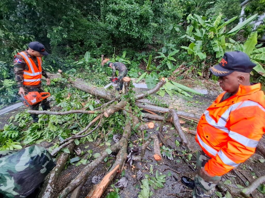 Las brigadas de la COMIPOL trabajaron intensamente en el retiro de escombros, poda y remoción de árboles caídos que obstaculizaban el tránsito, como ocurrió en el tramo Barahona–Pedernales, donde se habilitó el paso tras la caída de varios árboles.