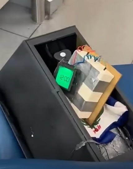 En su interior contenía un reloj pintado de negro mate, que funciona con dos baterías Triple A, color gris, tres barras de una sustancia sólida, color blanco, con diminutas pintas amarillas, unidas con cinta adhesivas de 11 centímetros de largo y 3.5 centímetros de ancho, presumiblemente jabón de cotilla, una bandera de Haití, con una porción endurecida,  presumiblemente cemento blanco sólido. Determinaron que este artefacto fue utilizado para infundir terror.