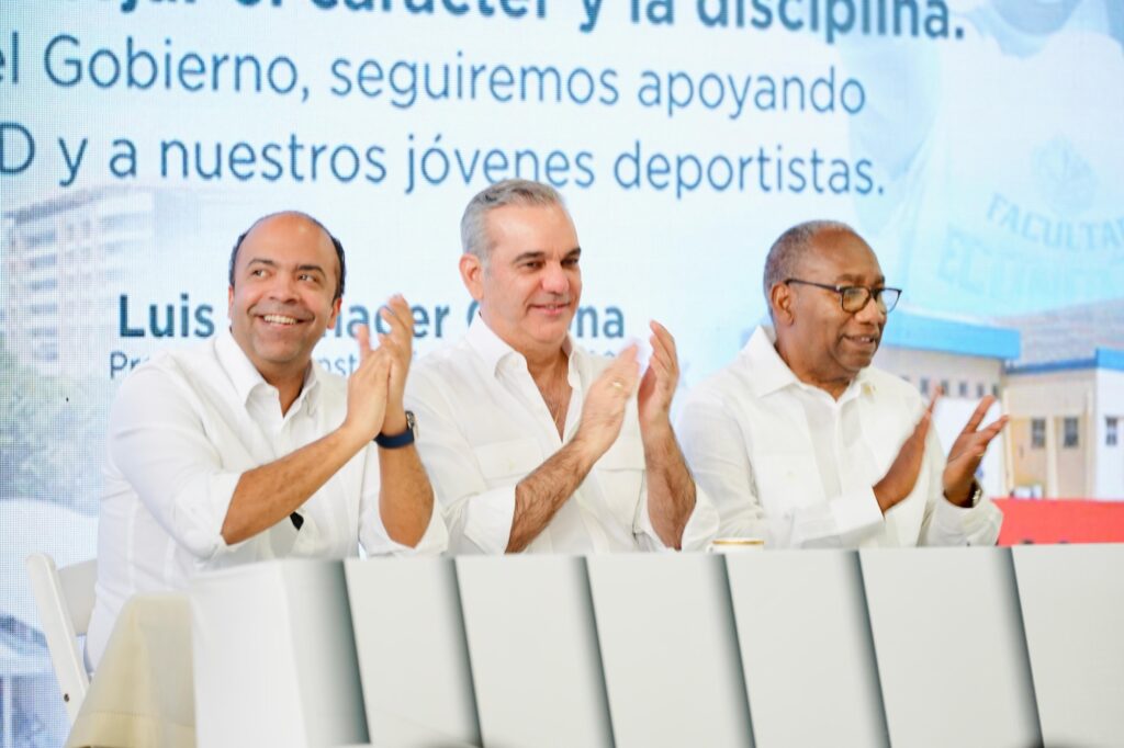Santo Domingo. El presidente de la República, Lic. Luis Abinader Corona; el rector de la Universidad Autónoma de Santo Domingo (UASD), maestro Editrudis Beltrán Crisóstomo; y el Lic. Samuel Pereyra, administrador del Banco de Reservas, encabezaron este sábado el acto de reinauguración del Polideportivo Tony Barreiro, ubicado en la sede de la Primada de América.
