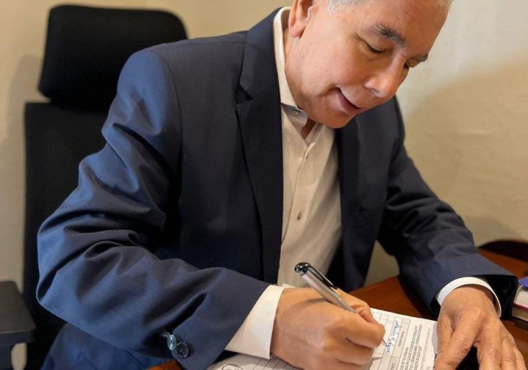 Contreras compartió en su cuenta de X, la fotografía donde figura el exmandatario Danilo Medina, colocar su firma sobre uno de los miles de formularios, en los que ya son más de 270 mil los firmantes.