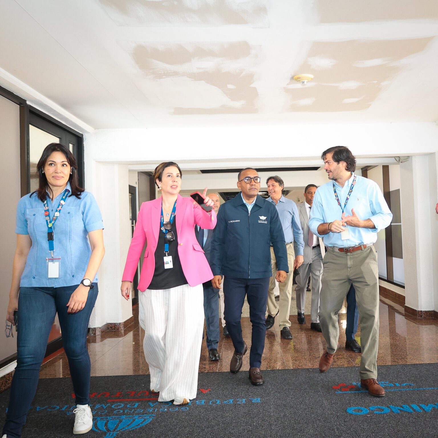 Durante su visita a la terminal, junto a un equipo técnicos del DA, Pichardo inició el recorrido por el segundo nivel hasta toda el área intervenida, incluyendo la zona frontal, en compañía de la CEO de Aerodom, Mònika Infante y el director ejecutivo del Cuerpo Especializado en Seguridad Aeroportuaria y de la Aviación Civil (CESAC), general Floreal Suárez.