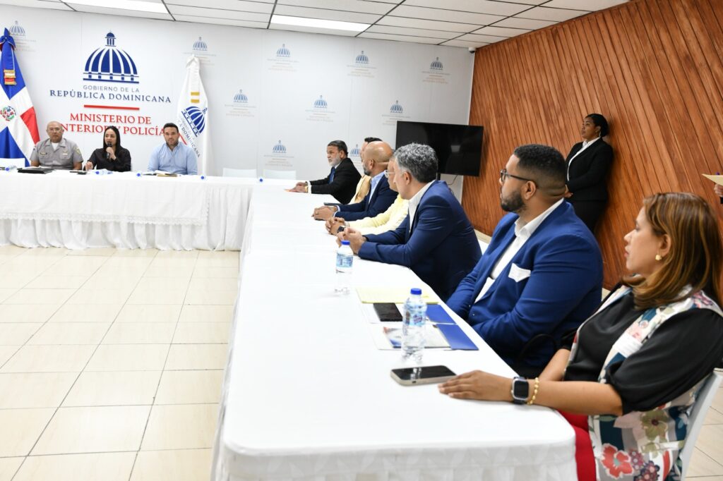 La ministra de Interior y Policía, Faride Raful, junto al director de la Policía Nacional, mayor general Ramón Antonio Guzmán Peralta, y el director del programa Control de Bebidas Alcohólicas (COBA), Fermin Domínguez, se reunieron con representantes de la industria del entretenimiento, incluidos musicólogos, dueños de bares, discotecas y establecimientos de adornos de vehículos, con el propósito de abordar las preocupaciones sobre las regulaciones de la contaminación sónica y la seguridad ciudadana.