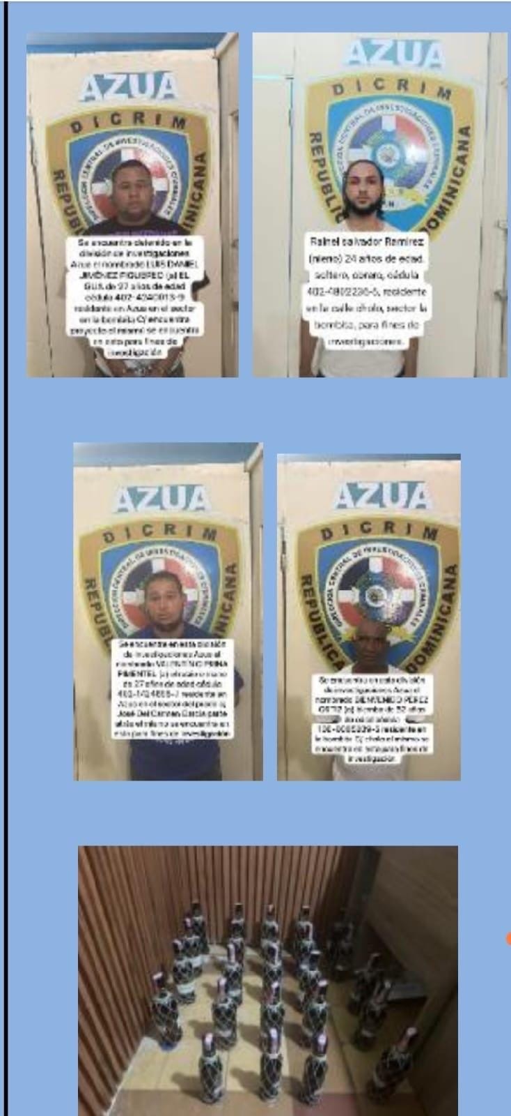 Miembros de la División de Investigación (DICRIM) en Azua apresaron en flagrante delito a varios individuos durante operativos de supervisión e investigación realizados en distintos sectores de la provincia.
