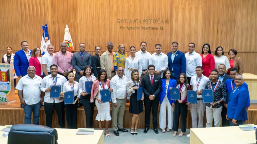 Santo Domingo Este.– En un emotivo acto, el alcalde de Santo Domingo Este, Dío Astacio, recibió en las instalaciones del Palacio Municipal José Francisco Peña Goméz, a un grupo de jóvenes estudiantes meritorios de las tres circunscripciones de este municipio, a quienes se les hizo entrega de placas y certificados por su excelencia académica. Además, de vivir la experiencia de ser “Alcaldes por un Día”.