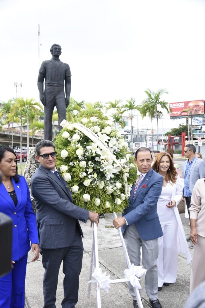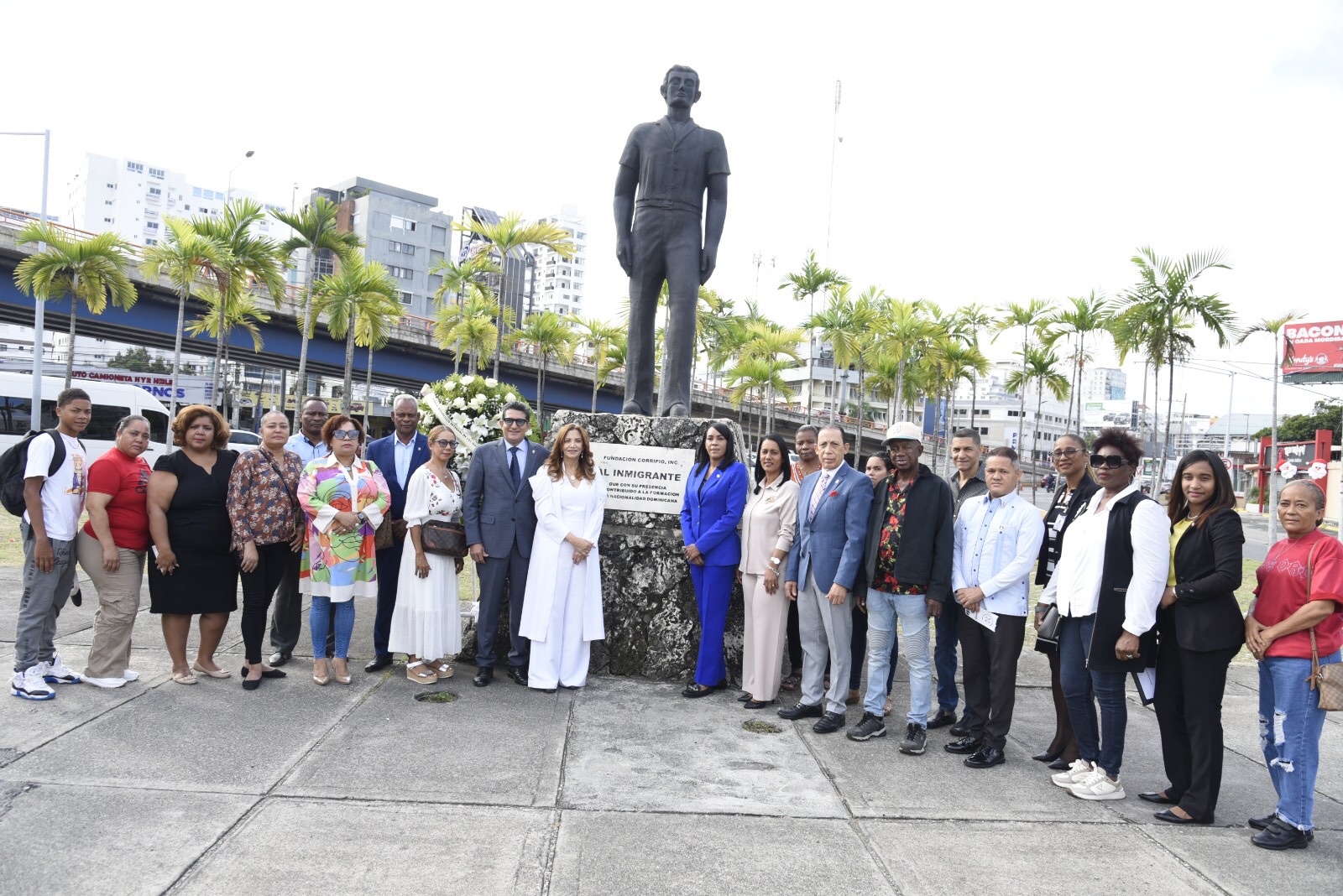 Santo Domingo,R.D.-En el marco de la celebración del “Día del Migrante, la diputada de ultramar y presidenta de la Fundación por el Desarrollo de los Dominicanos en el Exterior (FUNDODEX), Adelis Olivares, acompañada por un grupo de hombres y mujeres, encabezó el depositó de una ofrenda floral, durante un acto realizado en la Plazoleta al Migrante, ubicada en la intersección de la avenida 27 de febrero con Ortega y Gasset.