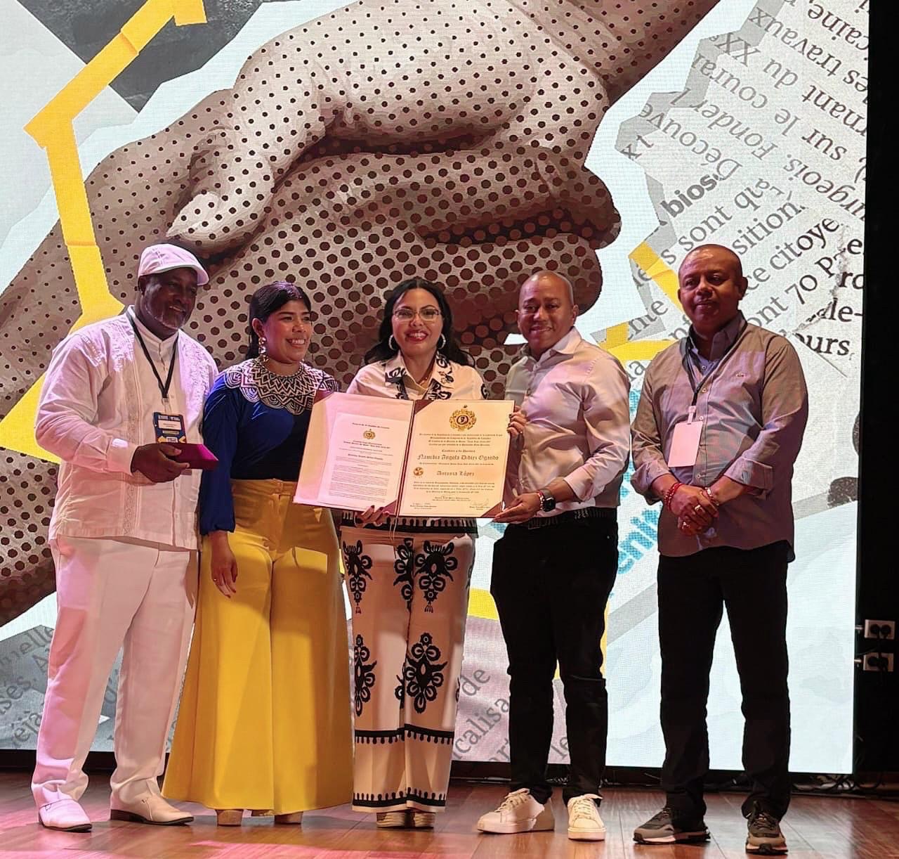 Durante la clausura de la jornada, la diputada Didiez recibió la Medalla al Mérito Antonio López por su liderazgo regional, la defensa de los derechos afrodescendientes y sus aportes a la integración centroamericana.