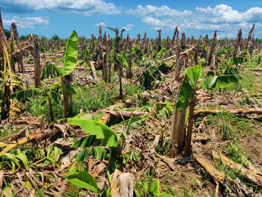Durante un recorrido por las zonas afectadas por el ventarrón, el director general García junto a una comisión del IAD pudo comprobar los daños provocados en cultivos de plátano, visibles en plantaciones que se encontraban en la etapa culminante de su productividad.