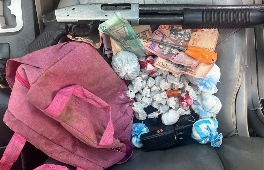 En medio de la refriega, los hombres arrojaron un bulto y lograron escapar de la persecución de los agentes, quienes procedieron a realizar una inspección en el área, encontrando en su interior, 696 gramos de cocaína, 115 de marihuana, 40 gramos de crack, dos pastillas de éxtasis, así como también una escopeta, calibre 12, con tres cartuchos calibre 12mm, dos radios de comunicación, una balanza, una tijera y la suma de 1,500 pesos en efectivo.