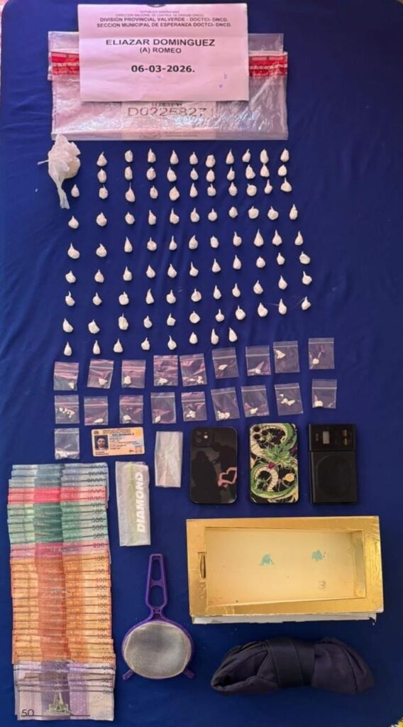 En una primera intervención, los agentes y fiscales realizaron un allanamiento en una vivienda en la calle Federico Jesús García, sector Amina del Municipio Esperanza, donde resultó detenido Guillermo Minier Mayol (Tony Motora), quien figura con tres registros por venta y tráfico de drogas.