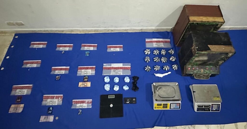 También se ocuparon cuatro balanzas, un chaleco antibalas, dos maquinas tragamonedas, tijeras, fundas y otras evidencias utilizadas para la preparación y empaque de sustancias controladas.