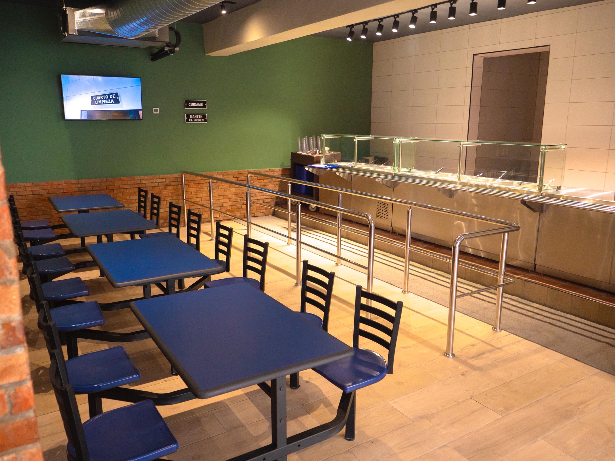 La nueva instalación cuenta con equipos importados de primer nivel, incluyendo mesas y utensilios de cocina, sistemas de extracción, aires acondicionados, cuartos fríos, almacenes secos, puertas especializadas, sistemas de grasa, cisternas, sistemas de ósmosis y nuevas líneas de gas, garantizando así una operación eficiente y de alta calidad.