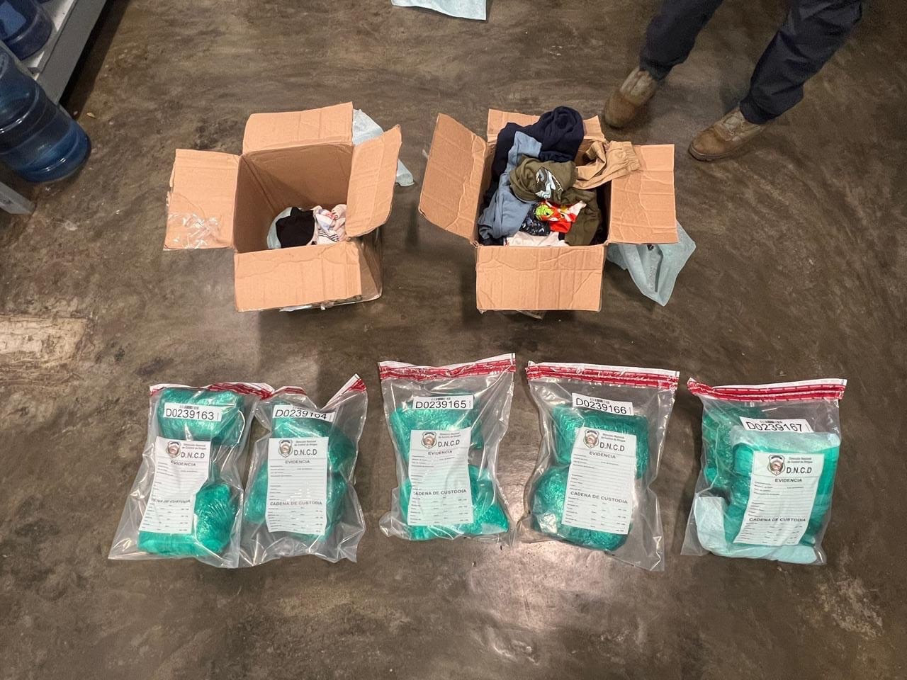 Atendiendo al protocolo establecido y por instrucciones del fiscal, se procedió a abrir las cajas, encontrando en cada una, cinco paquetes, para un total de 10, envueltos todos en fundas plasticas de color verde y con un peso aproximado a las 14 libras.