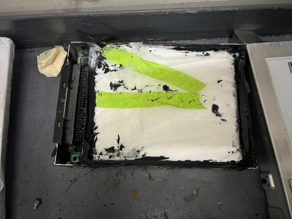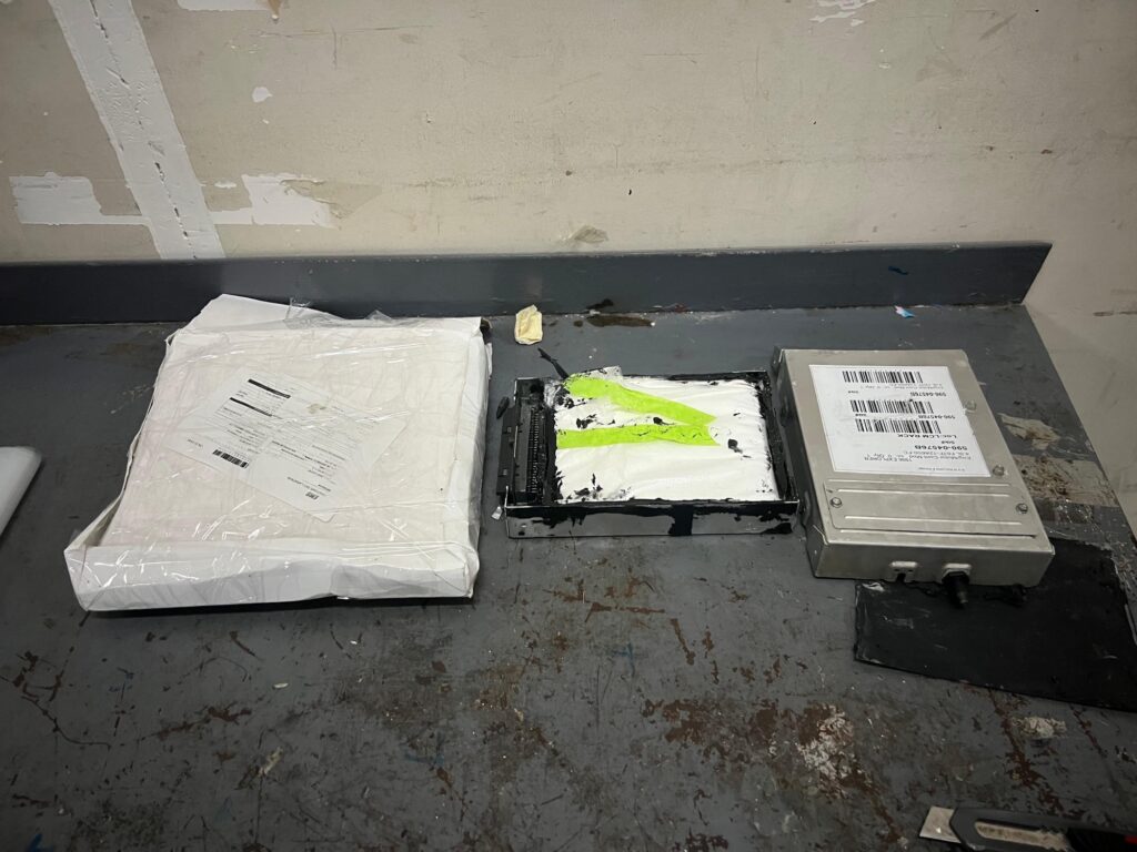 En otra labor de inspección, en el correo, los agentes coordinados por el fiscal, localizaron otro paquete, conteniendo dentro una computadora automotriz, en cuyo interior se incautó una lámina de la droga, con un peso de 105 gramos.