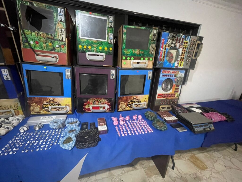 En las operaciones de interdicción, se confiscaron además, 05 balanzas, 06 cámaras de videovigilancia, varios celulares, una tablet, 03 paquetes de cigarrillos, 12 maquinas tragamonedas, dinero en efectivo, entre otras evidencias.