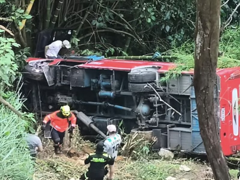 Un autobús intermunicipal que cubría la ruta Rionegro–Medellín se salió de la vía y cayó a un abismo luego de impactar con un furgón, el cual terminó volcado, en un hecho ocurrido en Colombia.