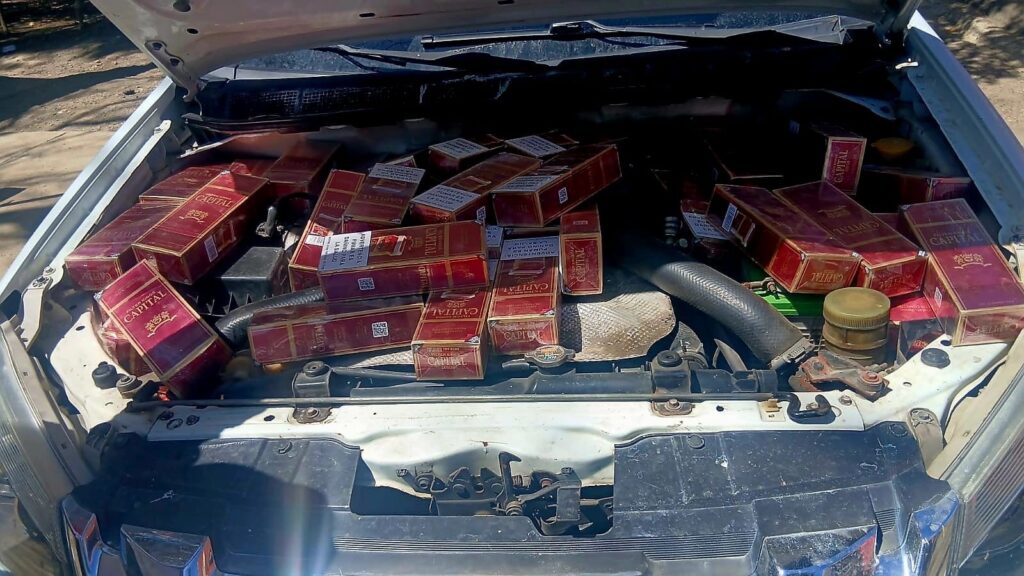 Durante la requisa del vehículo, los militares ocuparon 465 paquetes de cigarrillos marca Capital Rojo, equivalentes a 93,000 unidades, de mercancía de procedencia extranjera introducida de manera ilegal al país.