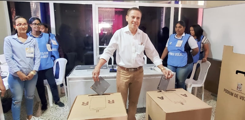Cotui, Provincia Sánchez Ramírez– El Candidato alcalde, por el municipio de cotui, Eugenio Montilla, siendo las 10:00am de la mañana de este domingo, llegó al local de los bomberos del referido municipio a ejercer su derecho al voto.