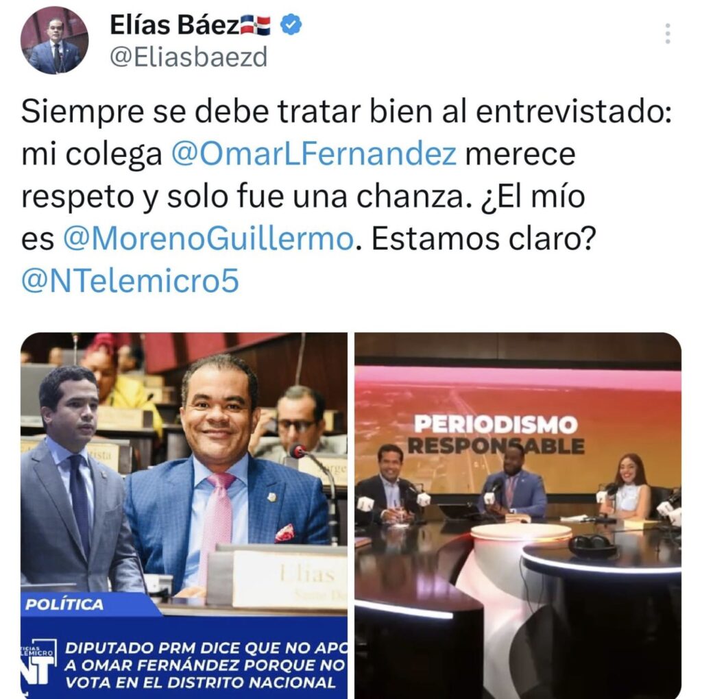 El diputado del Partido Revolucionario Moderno (PRM), Elías Báez, aclaró que el comentario que hizo sobre votar por Omar Fernández, para senador de Distrito Nacional se trató de una «chanza» y que su candidato a ese cargo es Guillermo Moreno.