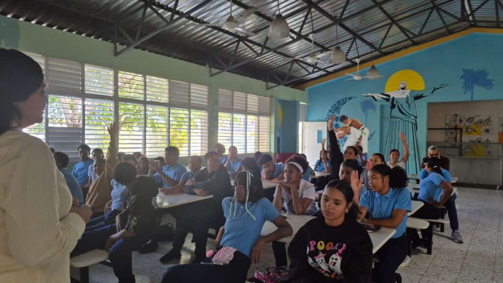 Las jornadas se realizaron en el Politécnico Sor Ángeles Valls Fe y Alegría y en la Secundaria Gregorio Urbano Gilbert Suero, donde se abordaron temas clave para el desarrollo integral de los adolescentes. La especialista en psicología Elianny de Jesús impartió la charla “Proyecto de Vida”, motivando a los estudiantes a reflexionar sobre sus metas personales, académicas y profesionales, así como la importancia de construir un futuro basado en decisiones responsables.