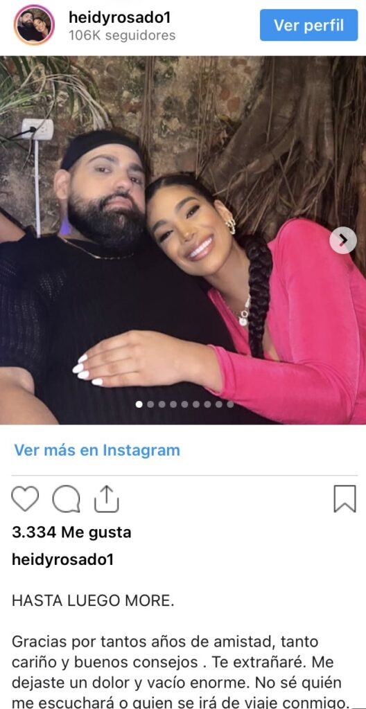 Heidy Rosado compartió en sus redes sociales varias fotografías junto a Fernández Haddad y un emotivo mensaje de despedida, en el que recordó los años de amistad, el cariño y los consejos que recibió de él. “Me dejaste un dolor y un vacío enorme”, escribió la comunicadora, agradeciéndole los momentos compartidos y la cercanía que los unía.