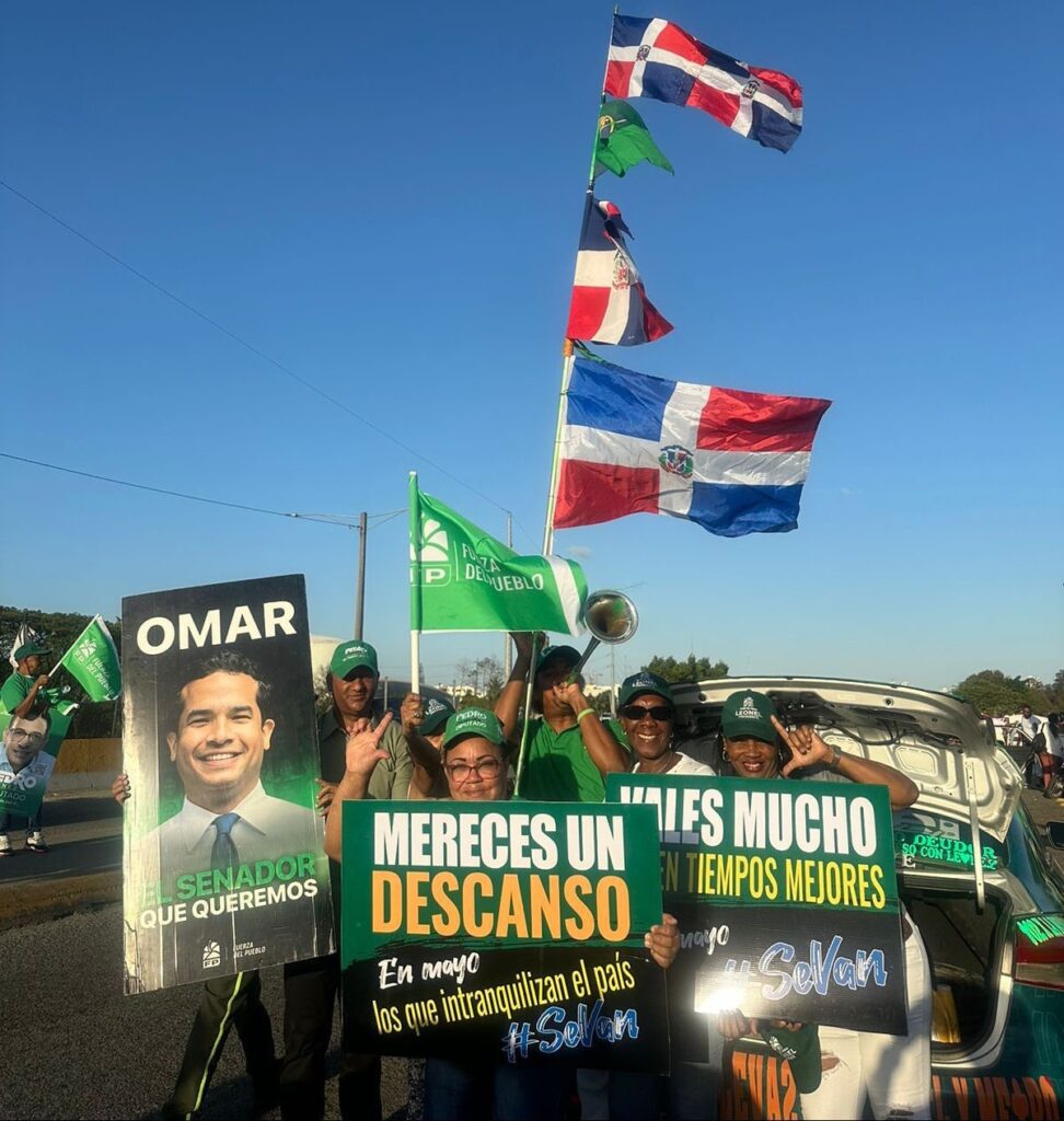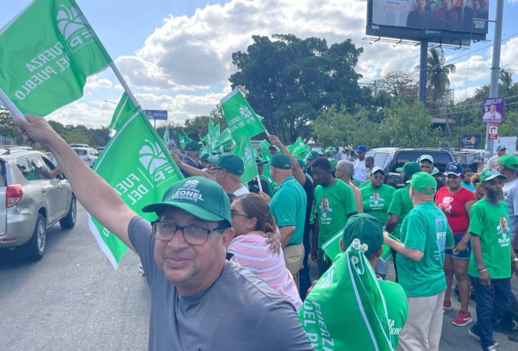 Con banderas en mano, los integrantes de la Fuerza del Pueblo estuvieron en las principales entradas de la provincia Santo Domingo y algunos puntos de la Capital.