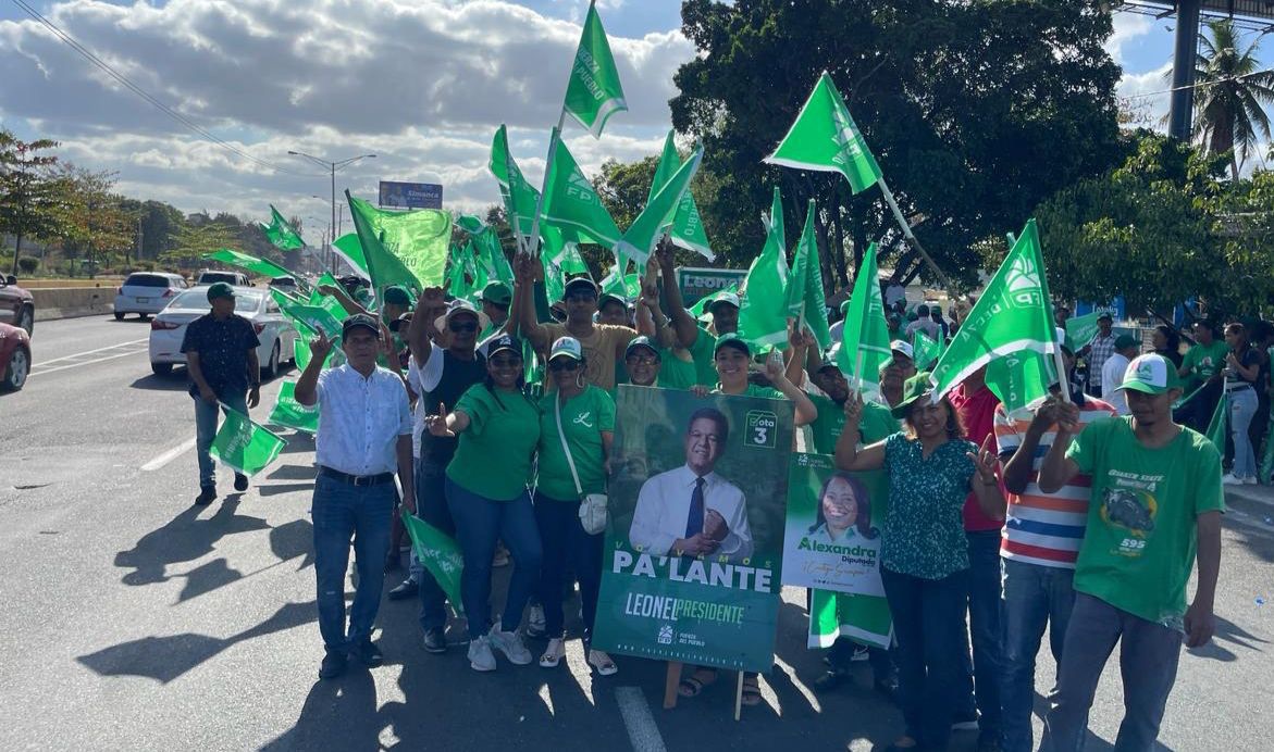 Con banderas en mano, los integrantes de la Fuerza del Pueblo estuvieron en las principales entradas de la provincia Santo Domingo y algunos puntos de la Capital.