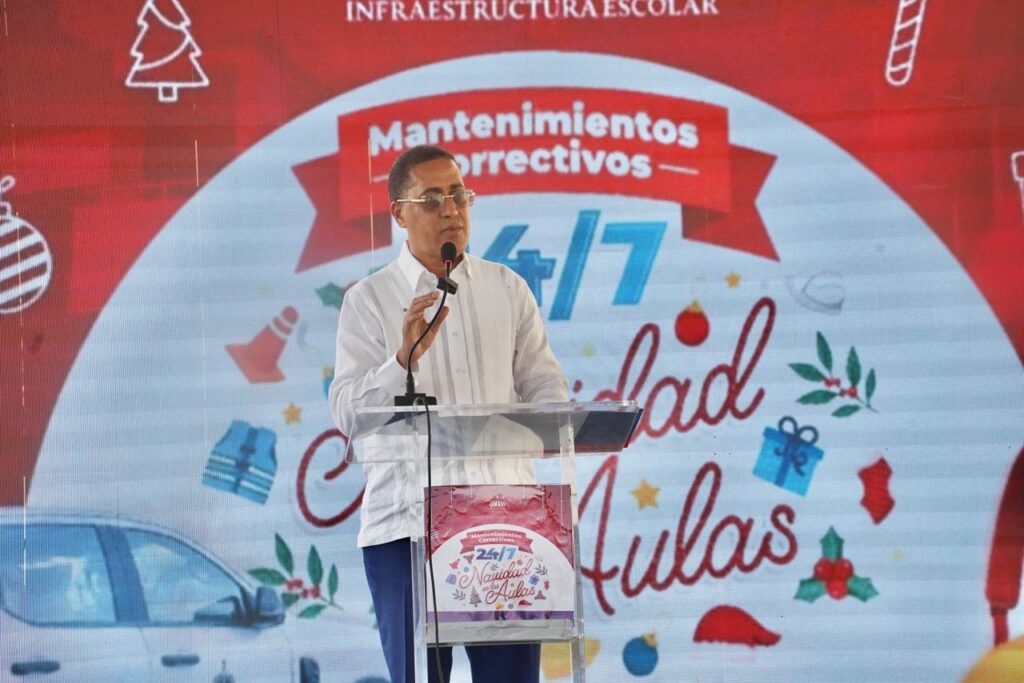 Con el plan «Navidad en las Aulas 24/7», que tiene una inversión estimada de 300 millones de pesos, Infraestructura Escolar implementa una amplia jornada de trabajo en todo el territorio nacional, para el remozamiento y reacondicionamiento de más de mil aulas, mientras los estudiantes, profesores y personal administrativo disfrutan de sus vacaciones de Navidad y fin de año, para que al regreso encuentren espacios adecuados y en óptimas condiciones, garantizando el fortalecimiento de la educación.